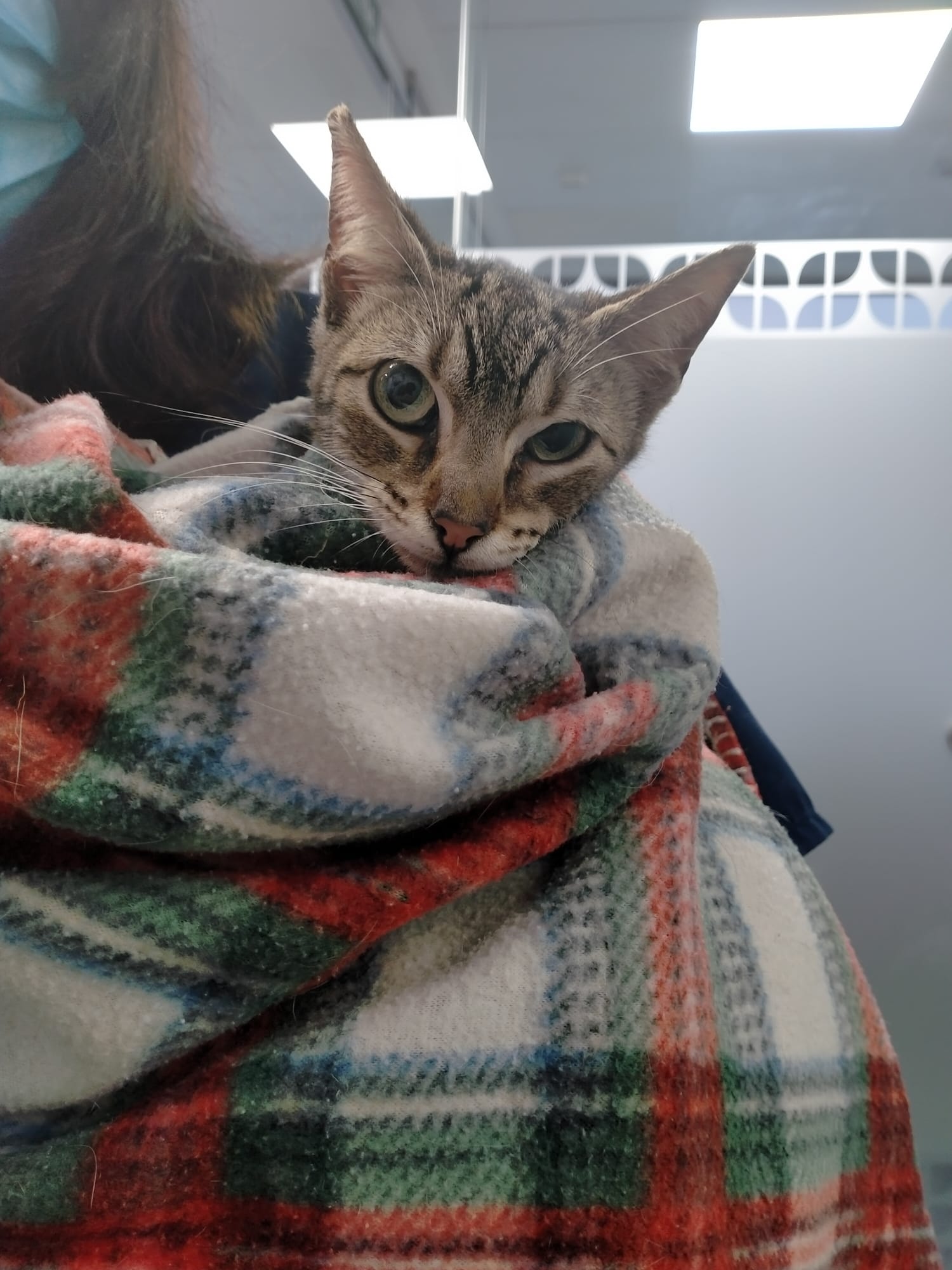 Trixie proviene de la colonia de la que varias asociaciones nos estamos haciendo cargo de esterilizar y atender a los mas urgentes (todos ellos están con cuadro respiratorio, ojos mal, ulceras en la boca..)