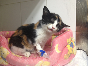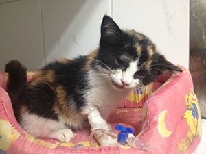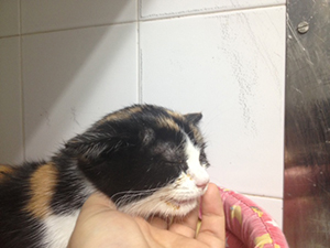 Txakolina, nuestra pequeña, ha cogido neumonia y en estos momentos esta ingresada. Hoy la hemos ido a ver y darle unos mimos, que los ha agradecido. Respira por la boca porque tiene mucho moco, pero la radiografia ha sido mas o menos buena, no le apetece mucho estar tumbada y se la alimenta con jeringuilla ya que ni huele la comida.