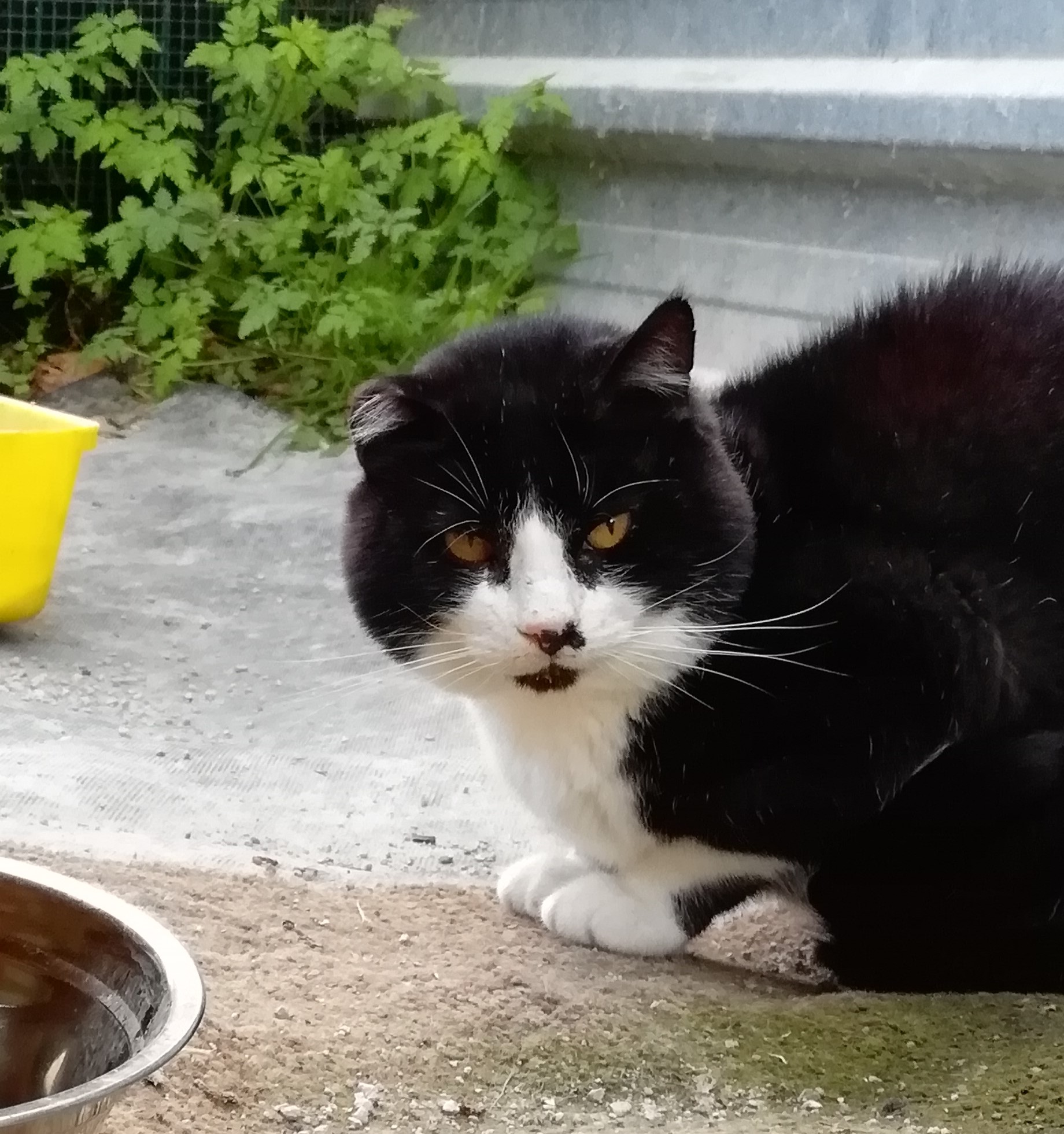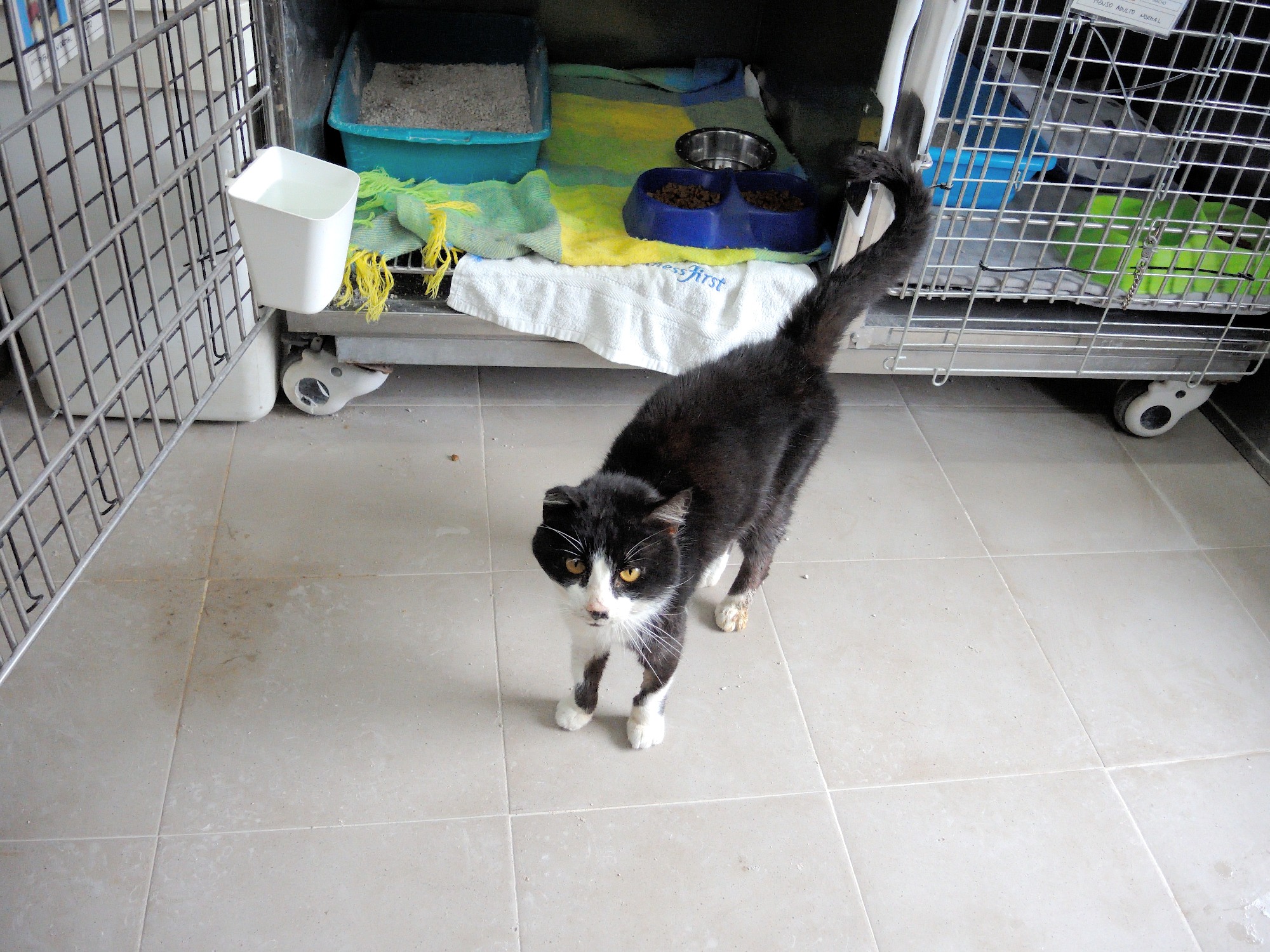 A VALEN le encanta comer. De los 4 gatos con los que convive en el recinto es el más confiado.