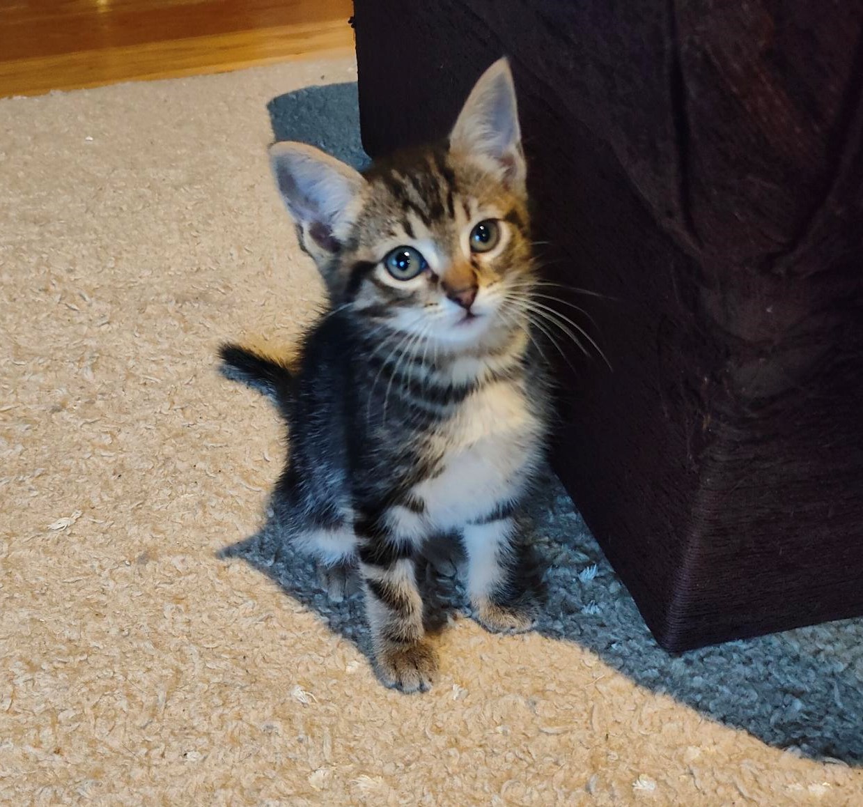 VANNY es un pequeño terremotillo. Es muy espabilada y la más juguetona, juega mucho con sus hermanos y con cualquier cosa que encuentre. Come divinamente y utiliza el arenero y el rascador.