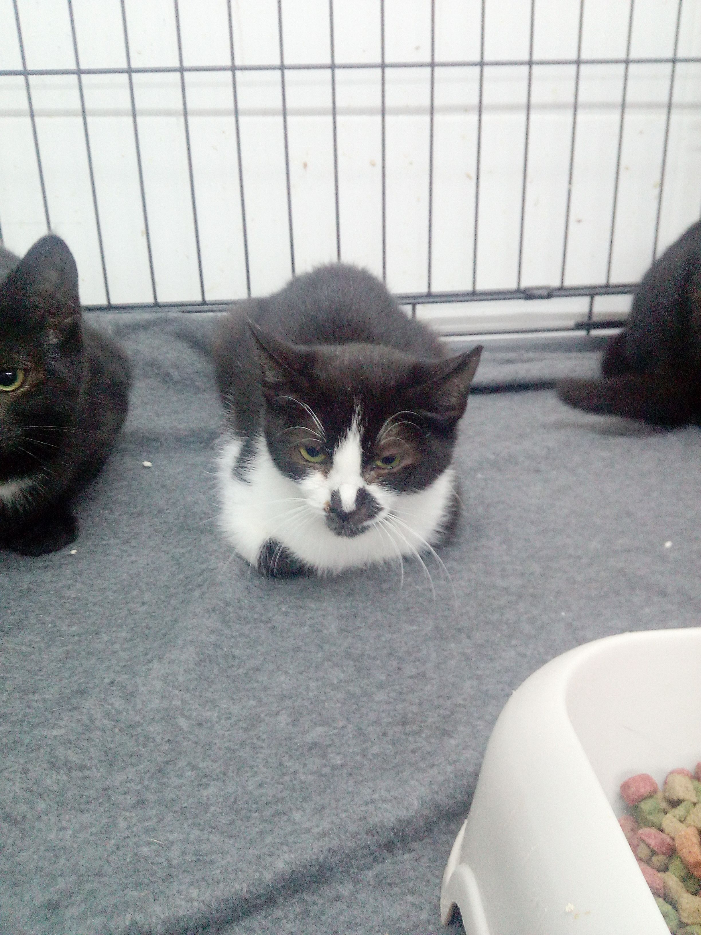 Vela, Bala, y Balina llegaban hace tres meses a la perrera. Tendrían aproximadamente dos meses, así que les calculamos unos 5. Lo hacían muy asustados y no tardaron en enfermar. La que peor estuvo fue Vela que llegamos incluso a temer por su vida, pero gracias a los cuidados veterinarios se han recuperado estupendamente. Las tres son muy tímidas y tienen muchisimo miedo, pero confiamos que en una casa con tiempo y paciencia acaben siendo adorables.Seria estupendo que o bien fueran juntas, o fueran a familias con mas gatos.