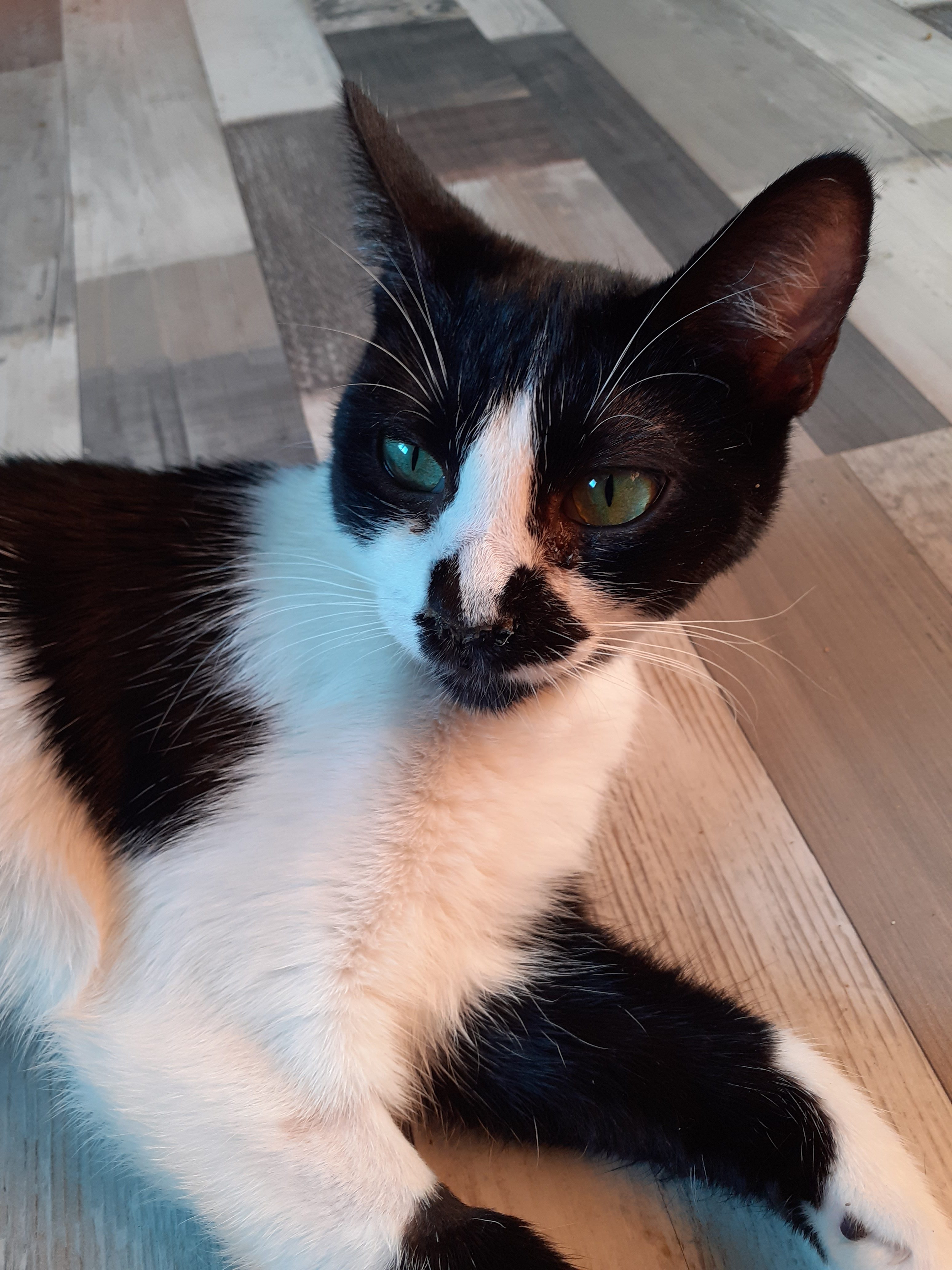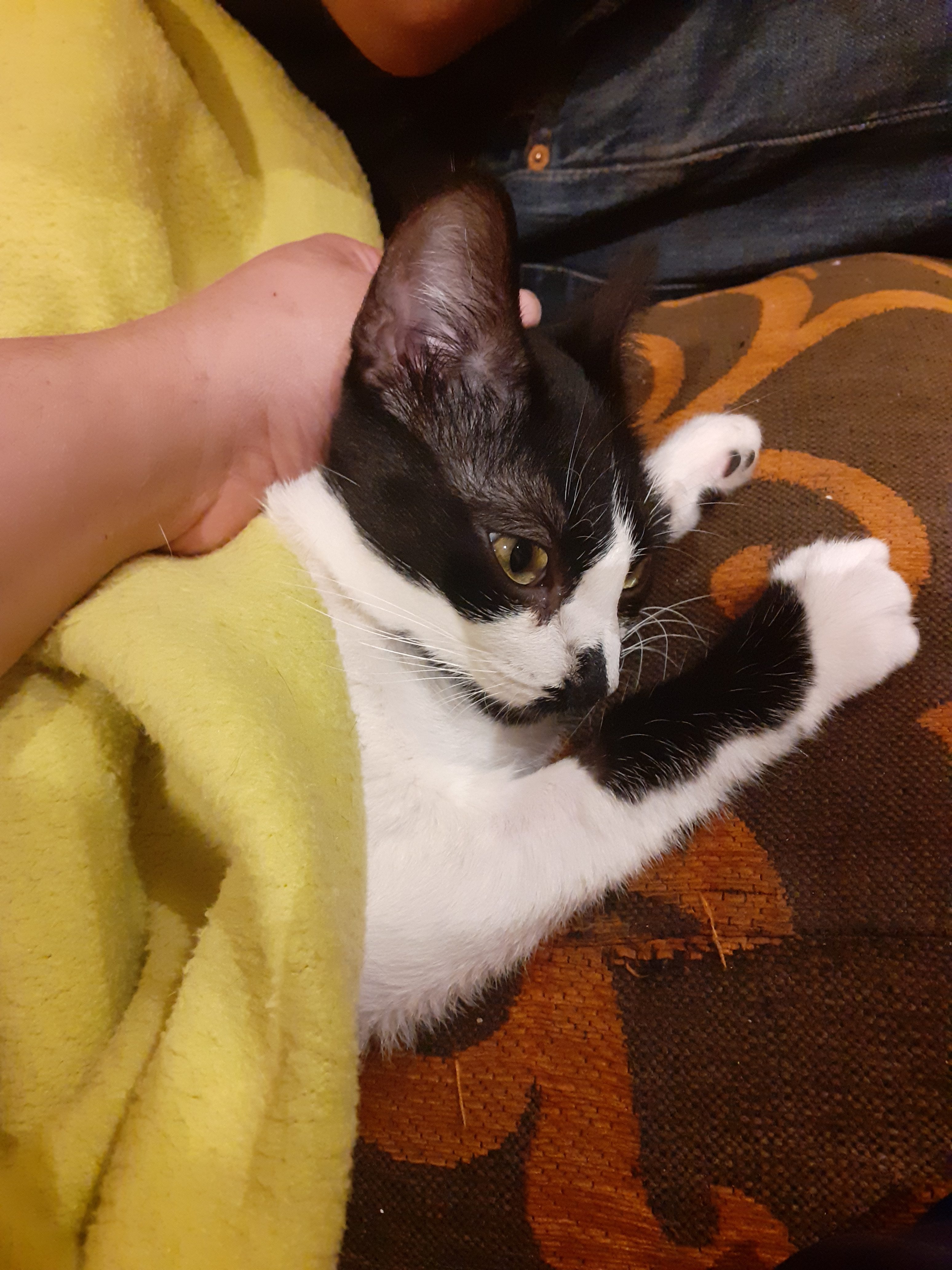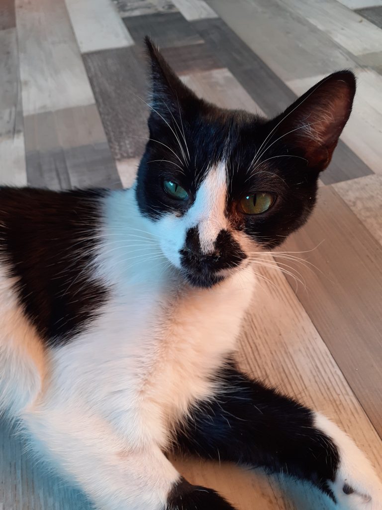 Vela es una gata Excesivamente cariñosa. Demasiado , no puedo dar dos pasos sin tenerla bajo mis pies, no puedo dormir sin que se tumbe en mi almohada y me acaricie con la patita la cara, o sin que se meta en el fondo de la cama y me mordisquee los pies, o me lama de arriba a bajo… .Es intensa en todas sus fases.La encanta tumbarse entre mi cuello y mi pecho a hacerme mil y una carantoña- Perros, gatos, humanos, vecinos… Es adorable con todo aquel que le dedica un segundo de su tiempo.Ojala Vela pronto encuentre una familia con la que compartir todo ese amor que tiene para dar.