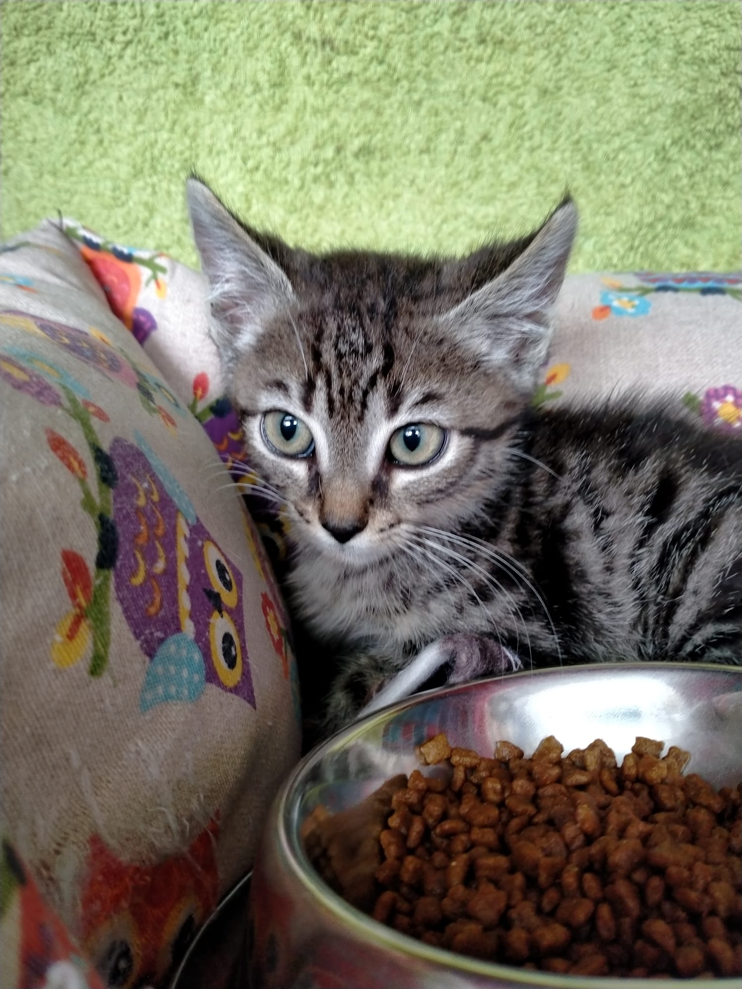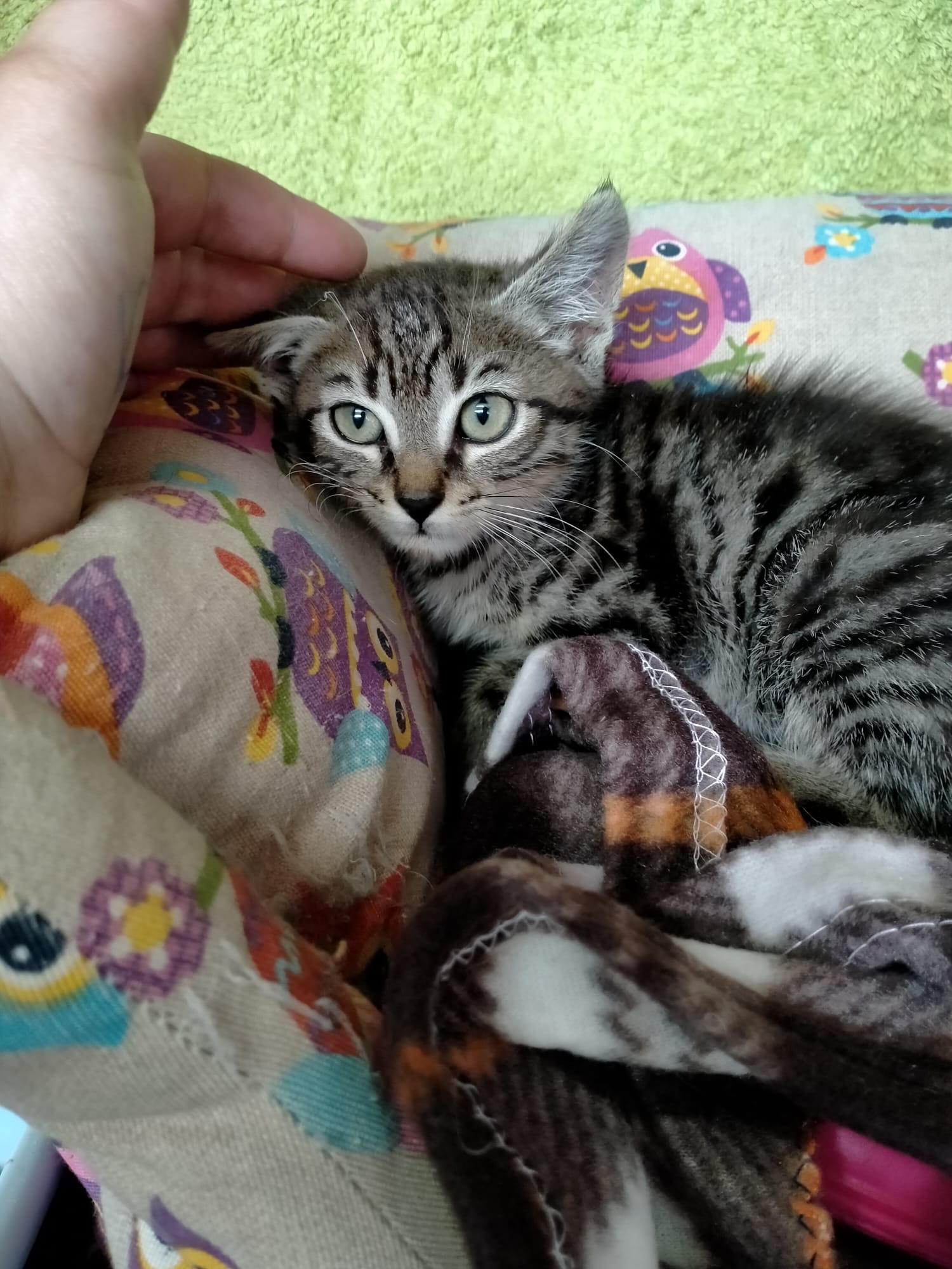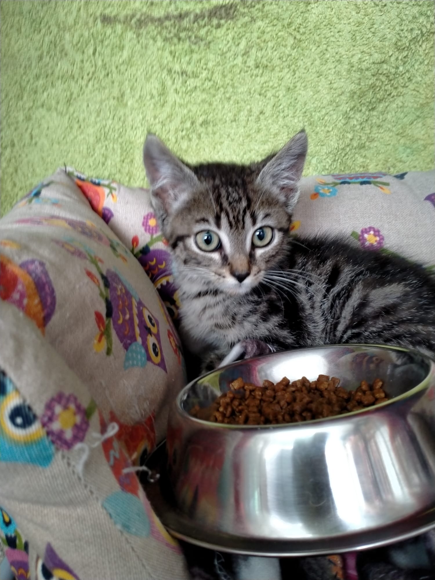 Villa fue recogida vagabundeando por la calle. Tendrá unos tres mesines. Es un poco tímida al principio pero en cuanto estás un ratito con ella es majísima.