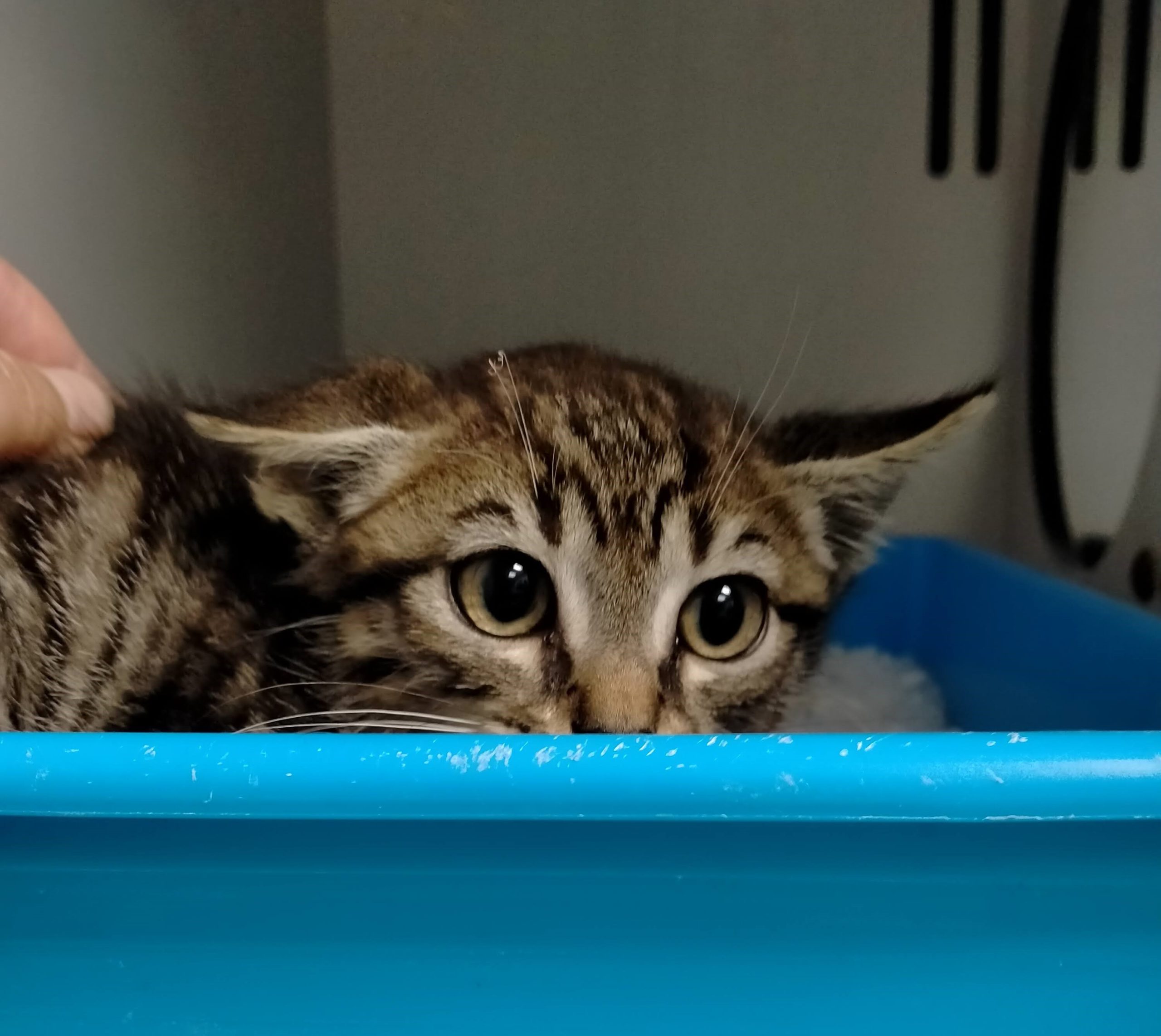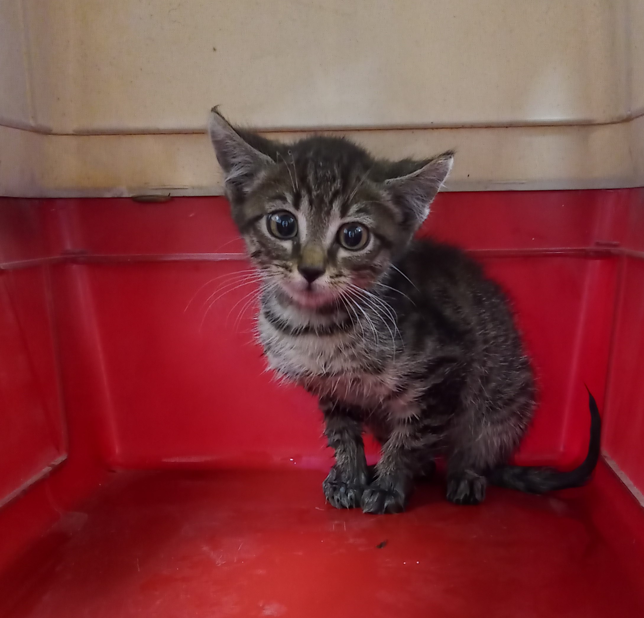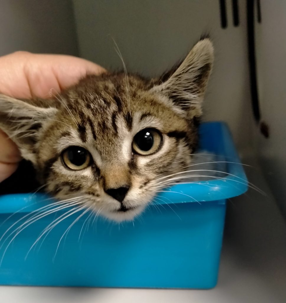 Villa fue recogida vagabundeando por la calle. Tendrá unos tres mesines. Es un poco tímida al principio pero en cuanto estás un ratito con ella es majísima.