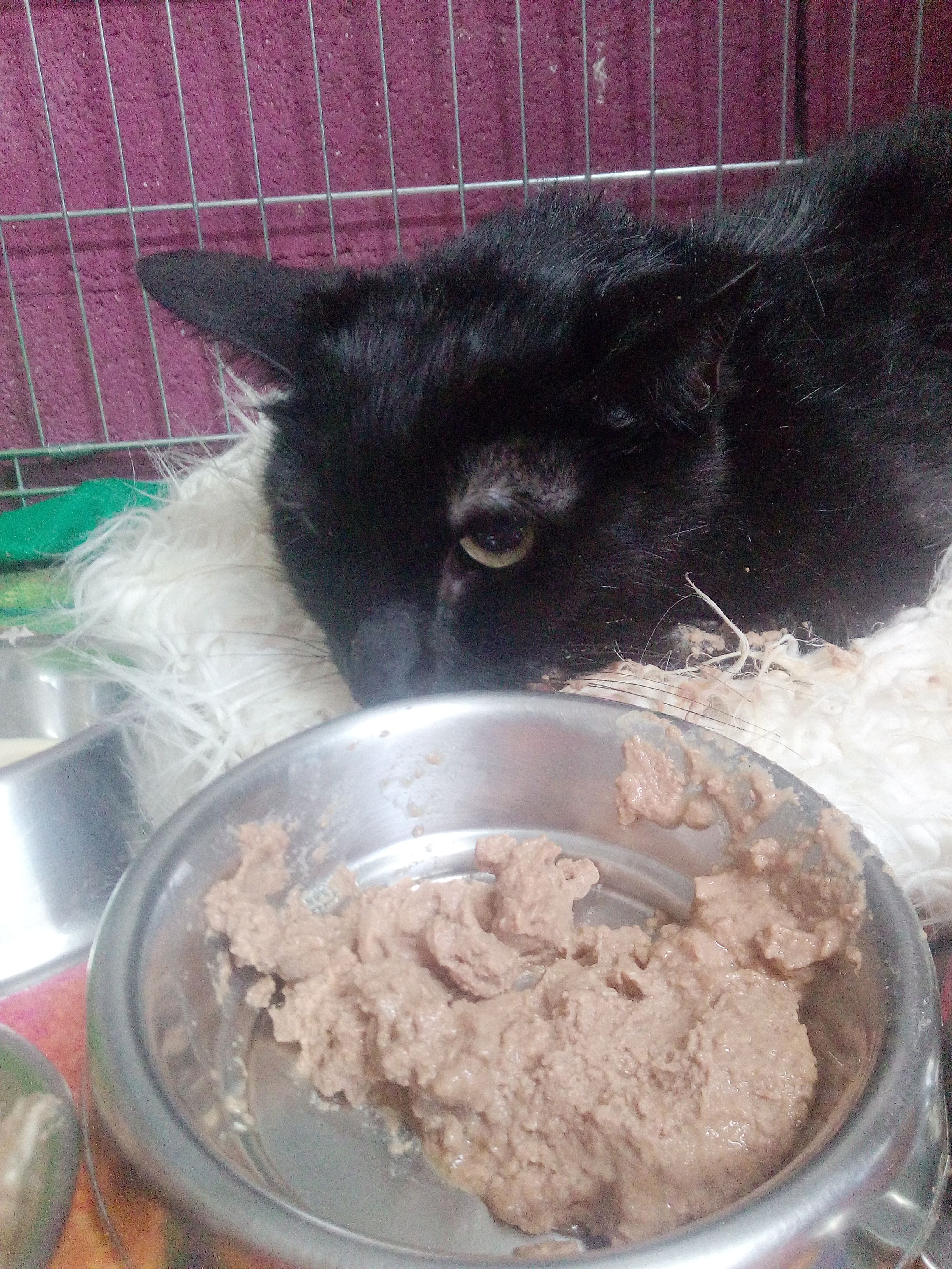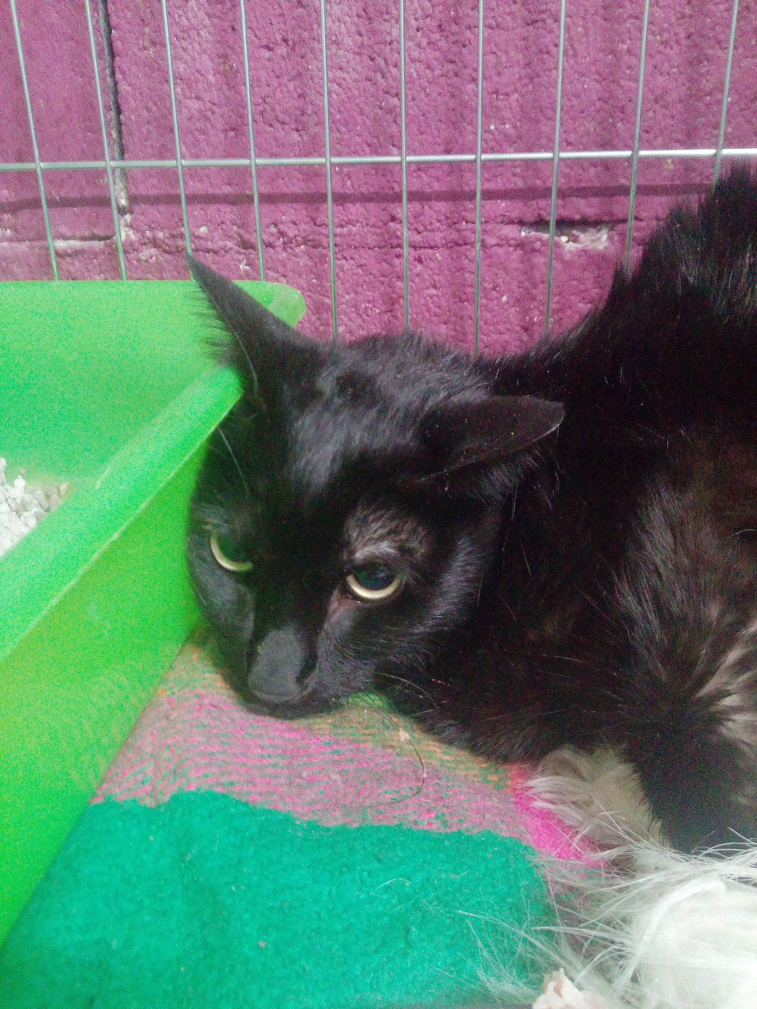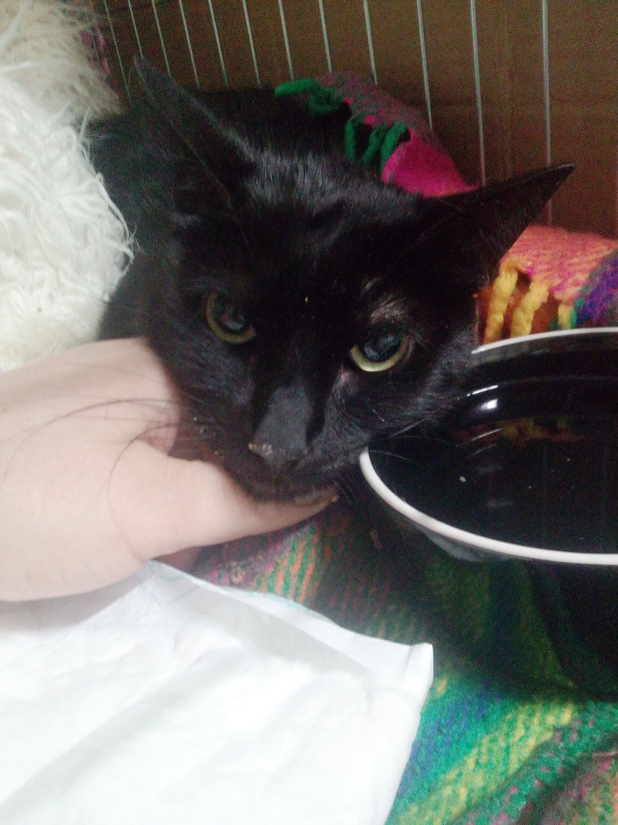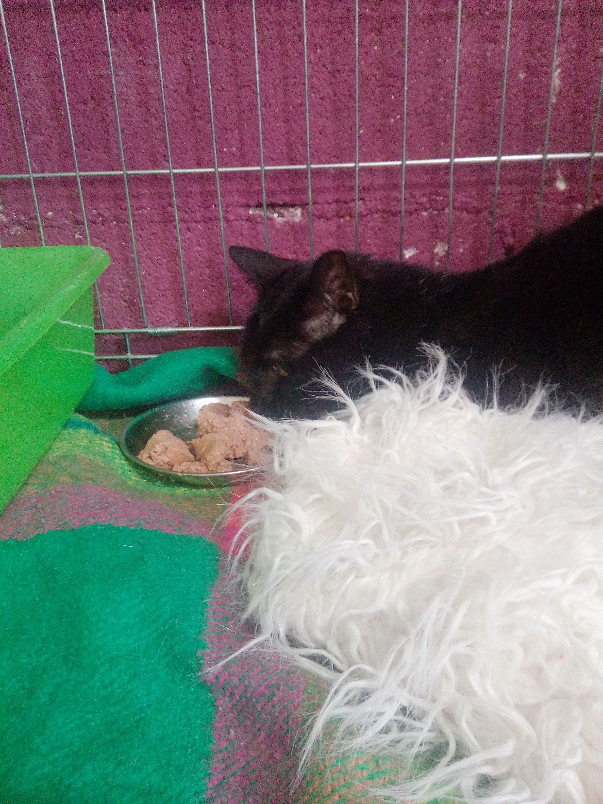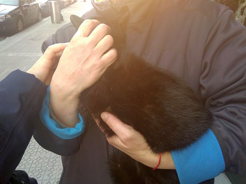 Vivian convivía en el mismo piso que Balttza y Txiki, pero parece ser que cuando entraron los bomberos al piso ella se asusto y se escapo por una ventana que da a un patio interior. Hoy ha aparecido en el armario de un vecino 🙁 en mal estado. Esta muy delgada y algo deshidratada, no sabemos el tiempo que llevara sin comer. Cuenta la familia del dueño que tendrá unos 7 años, que era una gata bastante mas esquiva y como veis en las fotos la han podido coger en brazos, ademas nosotras la hemos podido dar de comer a la boca sin problema y cortarla las uñas . ¡¡Estaba agotada!! Ella ha comido una latita entera sola mas lo que ha hemos ido dando poco a poco a la boca. A parte de vitaminas. Los veterinarios han considerado que esperemos un par de días haber si comiendo bien recupera para evitarla todo el estrés que supone ingresarla viendo que ha comido bien. Esta muy muy desubicada y con pocas fuerzas, da autentica pena verla con esa mirada de tristeza absoluta. Es urgente encontrar una casa de acogida para que se recupera bastante mal lo ha pasado ya. ¡¡AYUDA PARA VIVIAN!!