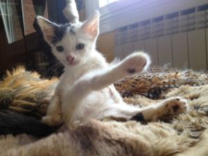 Volante es un pequeño gran luchador, aquí están estas fotos para demostrar lo bien que se encuentra, sano, feliz, gordito… a pesar de lo mal que lo ha pasado en su corta vida, es un gato ronroneador, cariñoso, tranquilo, se lleva bien con otros gatitos, solo falta escribir su final feliz, encontrar una familia que le de todo su cariño. Es un gato que despide un gran ternura, tendrás un amigo para siempre.
