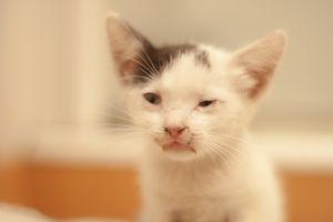 El pobrecito no terminaba de arrancar a comer y acabó ingresado de urgencia de nuevo y allí ha estado diez días estabilizándose, con una vía para medicación y suero… al final le pudimos sacar de nuevo a una casa de acogida y con mucha paciencia parece que va empezando a comer solito.