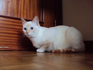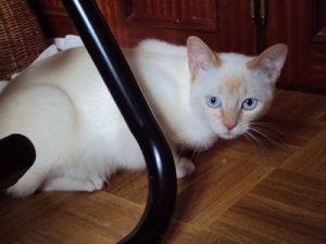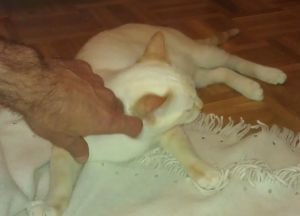 Sigue siendo un gato algo miedoso, pero con el tiempo hemos conseguido acariciarle sin que se escape… ¡¡incluso él mismo se restriega dejando su olor por nosotros!!
