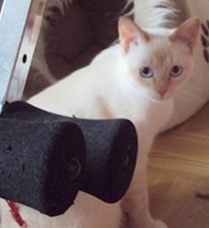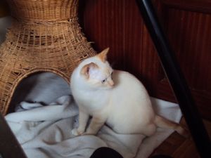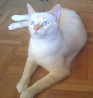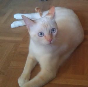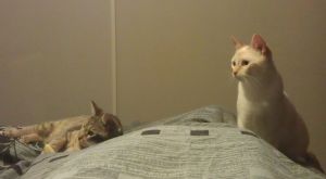 Con los demás gatos genial, ningún problema, juegan juntos y con la comida y los areneros… todo perfecto.