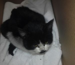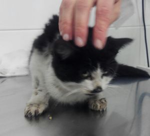 La limpiamos para que estuviera en mejores condiciones y ya vimos que tenía heridas en el culete…fue llevada inmediatamente a ingresar al vete y su estado era bastante grave   acartonada por deshidratación, respirando mal…esta mañana nos ha dejado