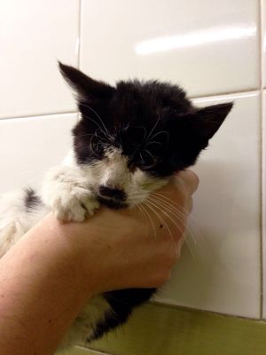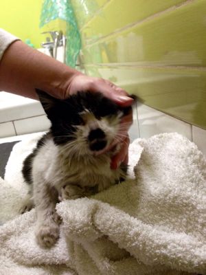 Water es esta chiquitina de apenas dos meses recogida ayer en la calle…estaba fatal…sucia, con una diarrea negra extrañísima y olorosa, oliendo horrorosamente
