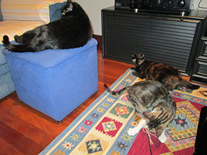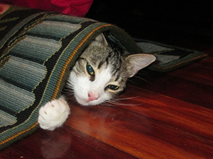 No se sabe nada de lo que ha pasado Wendy cuando vivía en la calle. Lo que sí sé es que cuando llegó a mi casa tenía miedo a muchas cosas. Aunque poco a poco se le van quitando ésos miedos, todavia siente pánico cuando la cojo en brazos, asi que procuro no cogerla mucho y supongo que poco a poco se le irá pasando. Por lo demás es un cielo de gata, guapa a rabiar y con un pelo muy suave, muy habladora, cariñosa y dulce y también un poquito trasto, pero es debido a la edad.  También ha aprendido a recibirme cuando llego a casa como hace el resto de mis animales. Pero Wendy no se conforma con unas caricias y enseguida empieza a hacer la croqueta y con su concierto de » mauus» consigue que le haga más caso que a los demás. Esconderse debajo de las alfombras es un juego muy divertido para ella y también correr por el pasillo como una loca. Mis 3 gatas y ella se llevan fenomenal, parece que han vivido juntas toda la vida….
