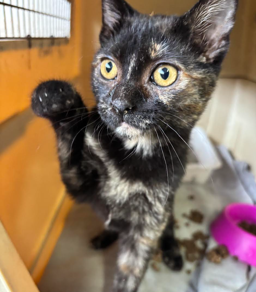 WICCA tiene unos tres meses, es super simpática y buena. Como buena cachorrita es un poco trastillo y curiosona. Se deja manejar bien y es super sociable, además de por supuesto ser preciosa. 🙂