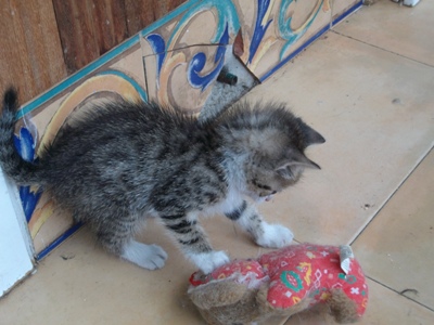 Es extremadamente cariñoso, muy parlanchín y juguetón. No le gusta estar sin el contacto humano ni gatuno, por lo que te busca y te sigue para que le achuches, le cojas en brazos y no te despegues de él