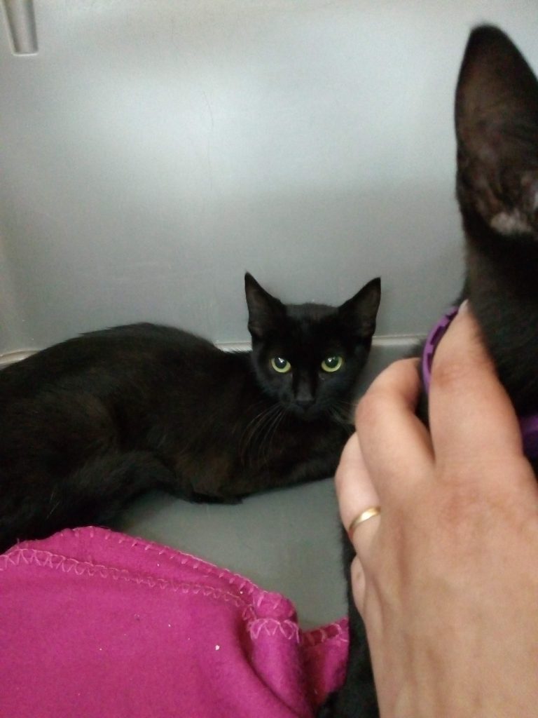 Winner y Sepia son estas dos cachorras de entre 6 meses y un año que llegaban hace unas semanas a la perrera municipal. Alguien las dejo en una comisaria alegando habérselas encontrado.Son gatas muy muy sociables, aunque Winner se muestra mas asustada que Sepia y al principio era mas recelosa, nada que con unos mimos no hayamos solventado 😀 . No sabemos de donde vienen, pero ambas llegaban con una mastitis (infección en las mamas ) muy importante. Eso si, ni rastro de cachorros 🙁 Gracias al tratamiento veterinario y a los cuidados de las compañeras la infección ha sido resuelta. Aunque quien las tuvo antes de llegar a nosotras puso a Sepia un collar, suponemos que para distinguirlas, se las distingue muy bien ya que Winner tiene en la pechera algun pelo blanco.Buscamos para ambas una adopcion a poder ser conjunta ya que ambas se necesitan .