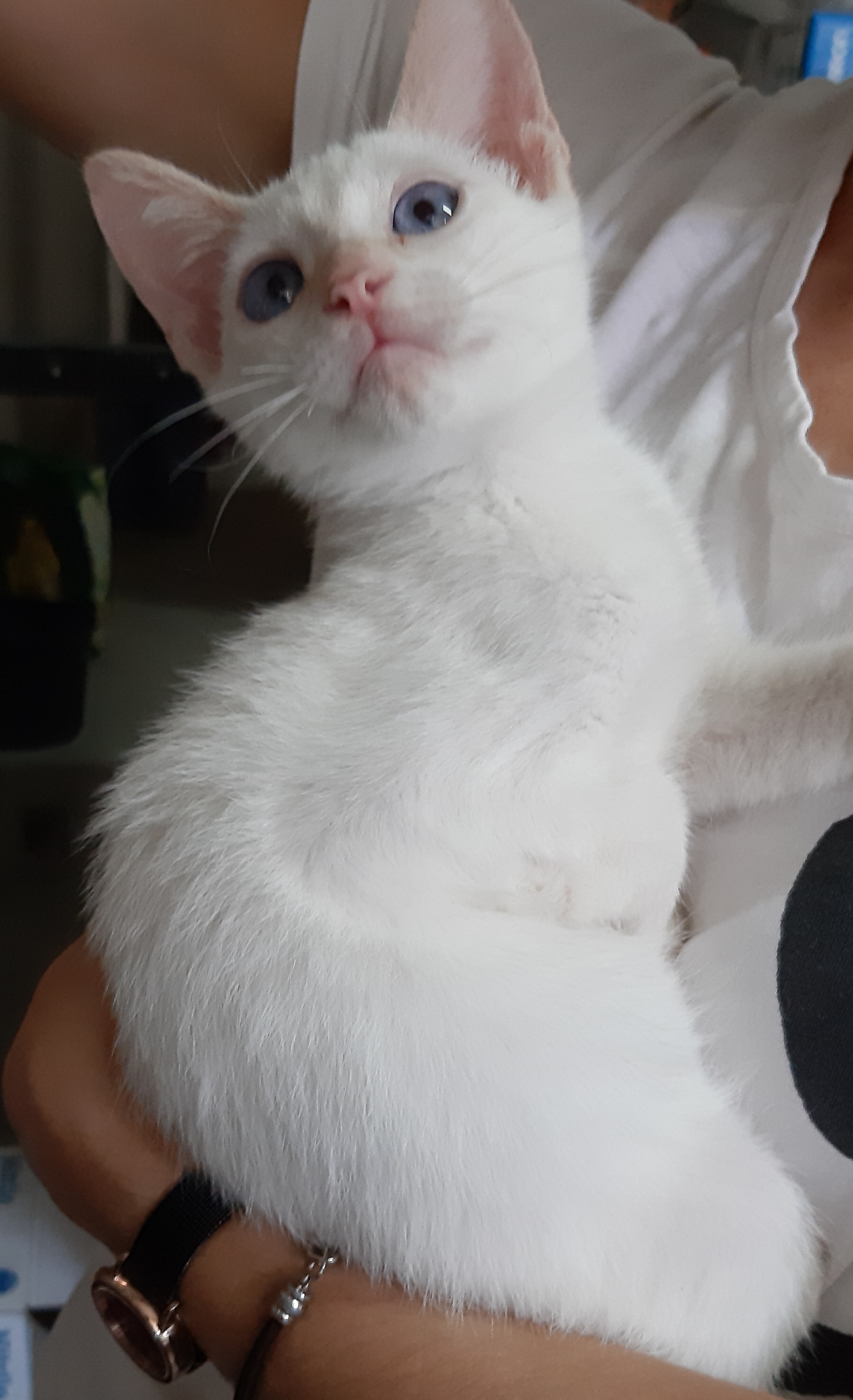 Yin llegaba hace unas semanas siendo solo un bebe de dos dias de edad aproximadamente. Su hermana no consiguió salir adelante, pero el contra todo pronostico si. Es un cachorro precioso color humo con pelo un pelo precioso al que las fotos no le hacen justicia. Convive en el refugio con Yang, otro cachorro que llego en esos días con el que se lleva de maravilla. Ambos son cariñosos y sociables y buscan un buen hogar juntos. El Yin y el Yang..