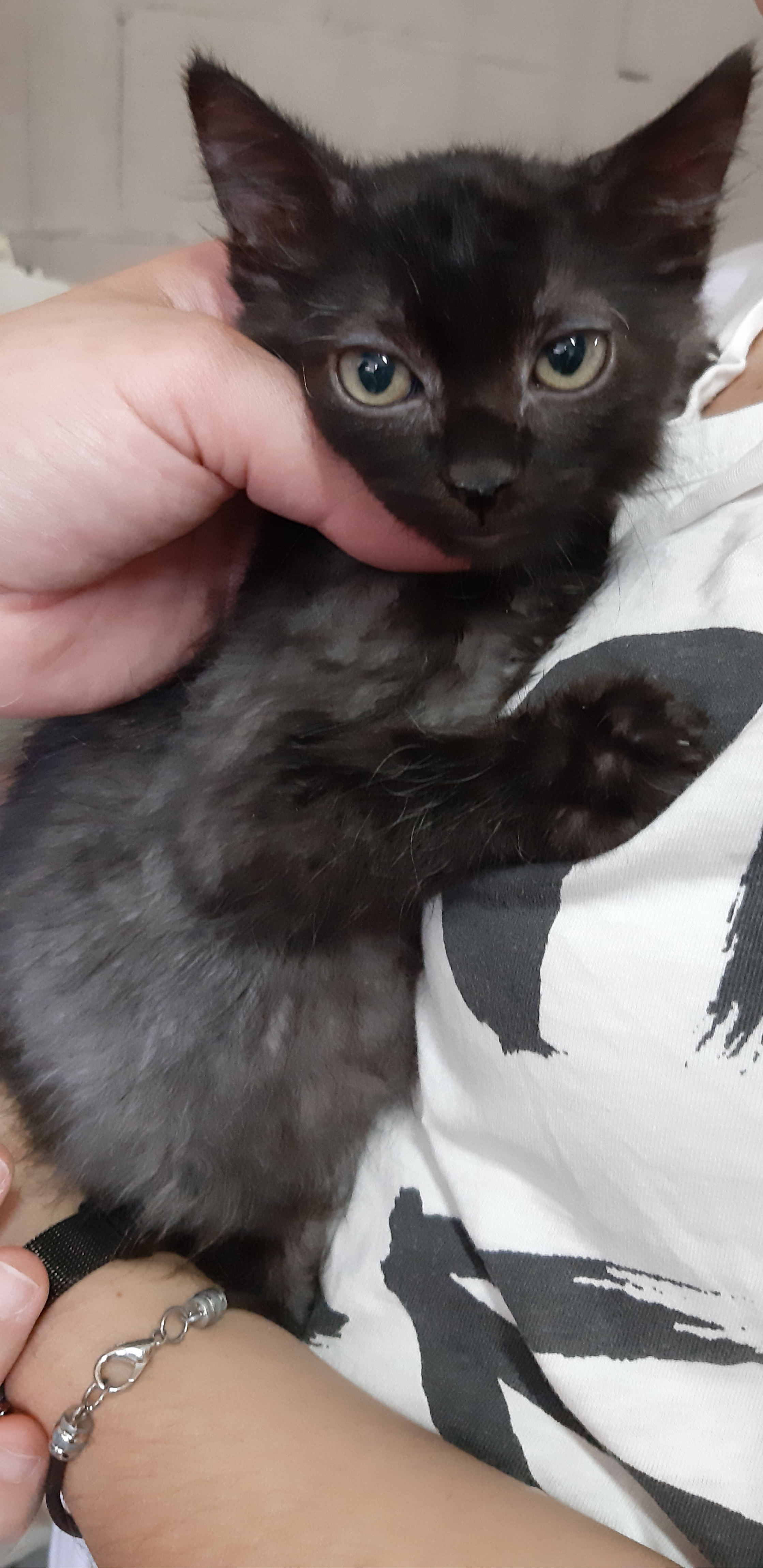 Yin llegaba hace unas semanas siendo solo un bebe de dos dias de edad aproximadamente. Su hermana no consiguió salir adelante, pero el contra todo pronostico si. Es un cachorro precioso color humo con pelo un pelo precioso al que las fotos no le hacen justicia. Convive en el refugio con Yang, otro cachorro que llego en esos días con el que se lleva de maravilla. Ambos son cariñosos y sociables y buscan un buen hogar juntos. El Yin y el Yang..