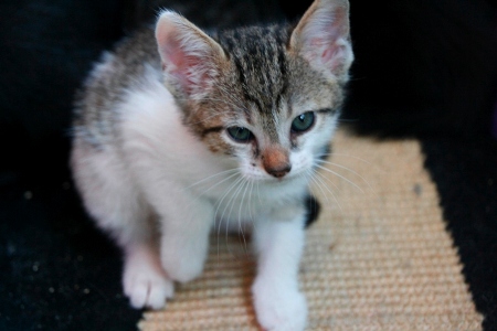 Yoe es una gatita curiosa pero tranquila, bebe de Aby de dos meses y un encanto aparte de guapísima.