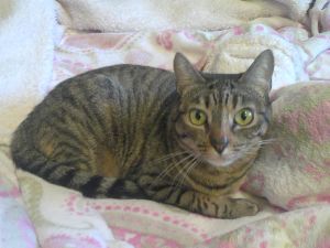 Es una preciosidad atigrada y ya va siendo hora de que alguien le de una oportunidad y le haga un huequito en su vida…