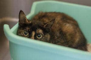 Zarina también ha sido recogida de una colonia y ahora está desubicada y asustadita, aun así, se ve que es una gatita buena y se deja hacer…