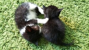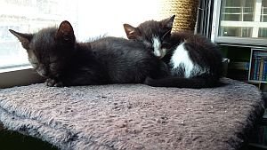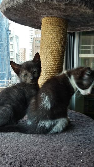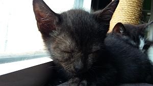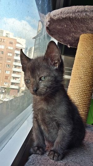 Aquí fotos del bebé de la casa, es un enano, mucho más pequeño que su hermana, le costó más comer a él solo, pero ahora come hasta pienso. Saben los dos usar muy bien el arenero y ya empieza a jugar con su hermana, aunque ella es bruta y él es un mañoso.